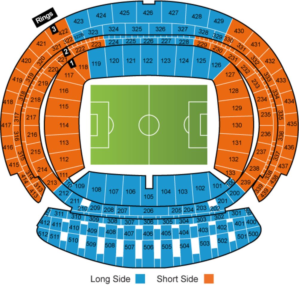 | סוג כרטיס | מאחורי השער, לאורך המגרש קומה עליונה, לאורך המגרש קומה תחתונה |